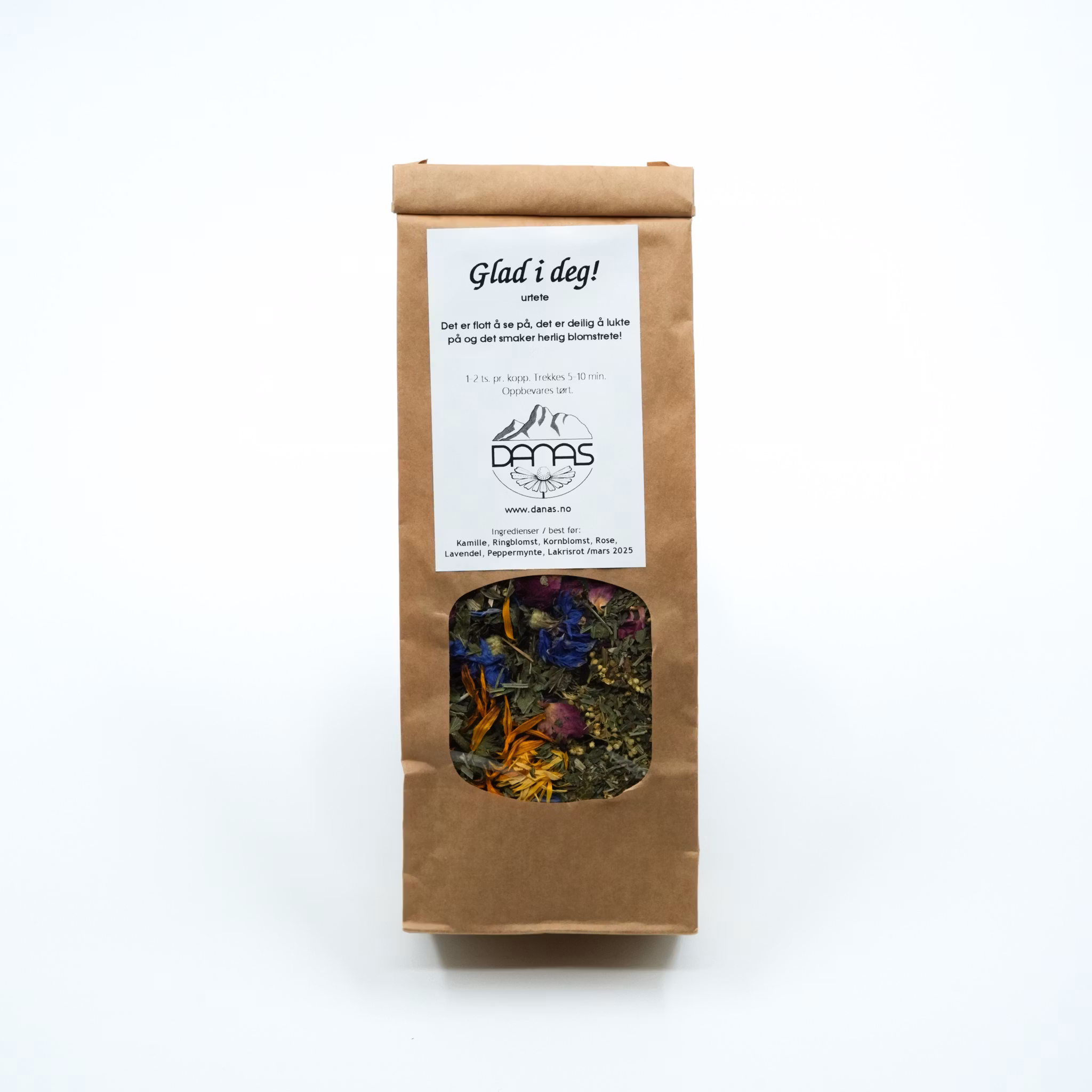 Blandingen skal gi en deilig, blomstrende og søt te-opplevelse. Den inneholder urter som jeg dyrker økologisk, omgitt av Romsdalsfjellenes rene natur.